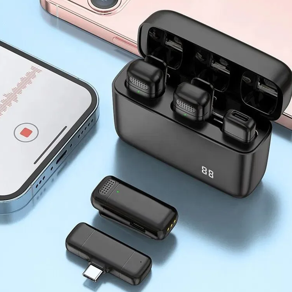 Package include:2* mini wireless microphones, 1* charging case, 1* type-c receiver, 1* user manual.